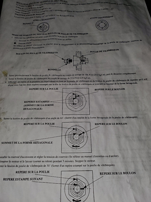 - comme moi, vous serrez la vis de vilebrequin à la clé à chocs, sans la poulie, vous vous assurez de la tension de la courroie, serrez le tensionneur puis desserrez la vis de vilebrequin (clé à chocs à nouveau, sans la retirer) et ensuite, vous mettez le cache